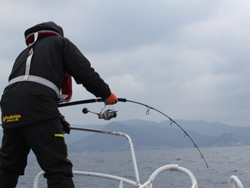 【寺下さん】潮が動かず 食い渋るなか、寺下さんにヒットです。 |