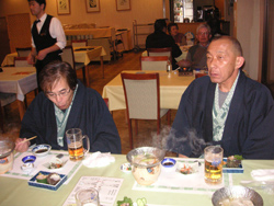 | 【広沢、寺下さん】夜は、ホテルのレストランで 会食(#^.^#)(釣り談義に花が咲き対馬の夜は更けて行きました。)※又の、ご乗船お待ちしています。 |