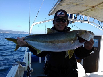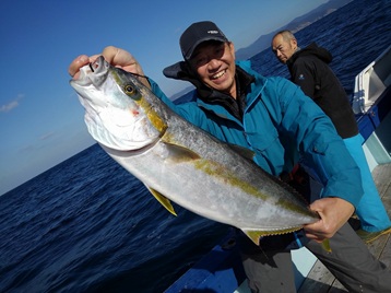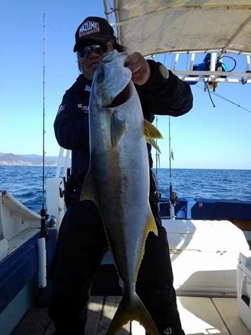 強風の為風裏への出船となりました。 潮も良い具合に流れて、ポイントに入ると 一流し目から良型のヒラマサがヒットして常に誰れかのロッドが大きく曲っていました。 ヒラマサ・ハガツオ・アコウ・アカハタ・ウッカリカサゴでした。