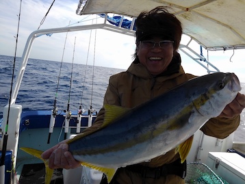 佐藤グループ・2日目は終日、潮がほとんど動かず大苦戦を強いられてしまいましたが、 頑張ってシャクリ続けて頂き良型のヒラマサをゲットして頂きました。 潤ちゃん10㎏超のオオマサを手中に、おめでとうございます! ヒラマサ(10㎏超を頭に)ワラサ・マダイ・ウッカリカサゴでした。